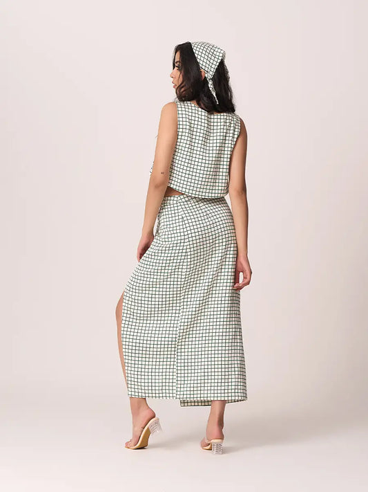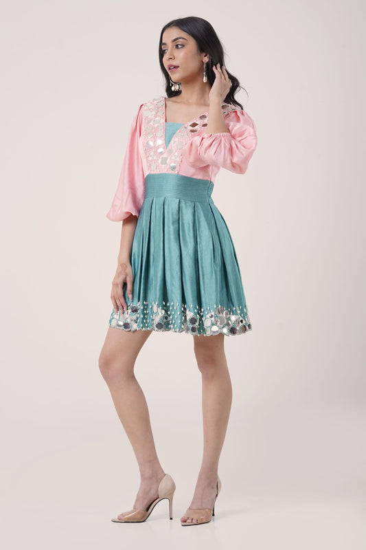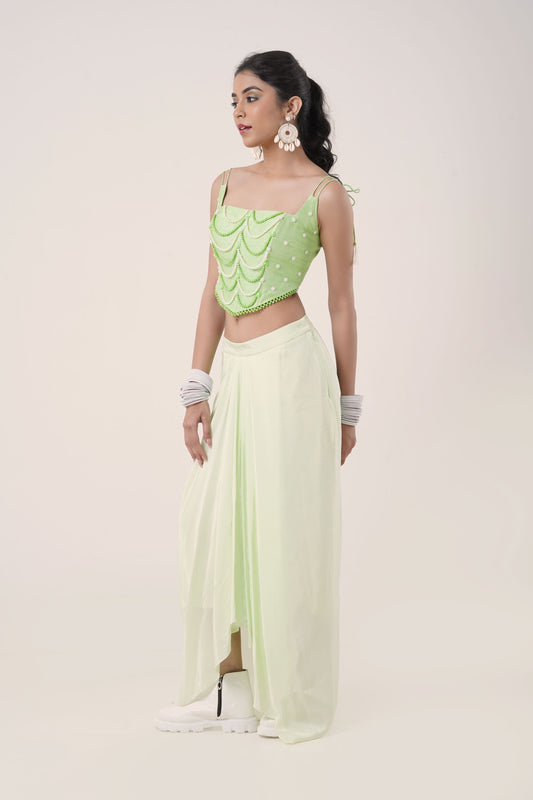 Mint Green Draped Skirt & Beaded Corset Top Set
