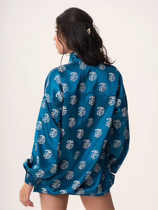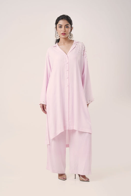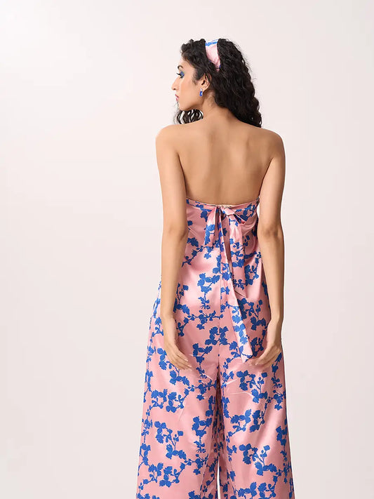 Pink & Blue Floral Stone Work Satin Jumpsuit