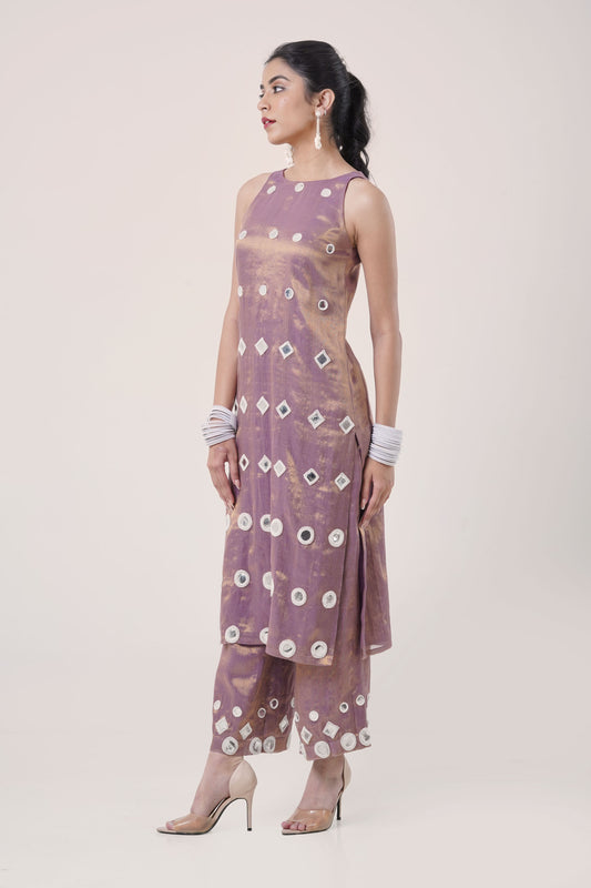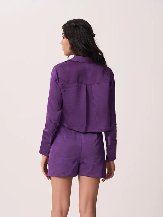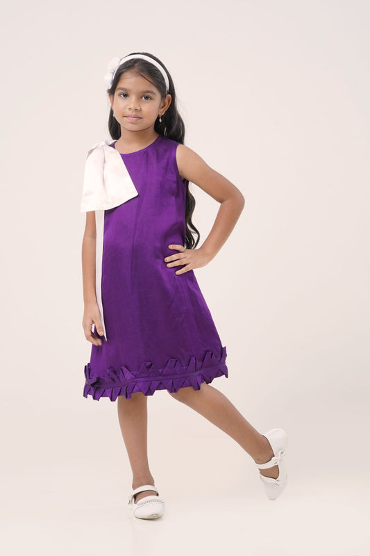 Purple Linen Satin Dress with White Shoulder Drape (5-7; 8-10; 11-12 Years)