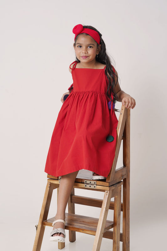 Classic Red Cotton Sundress with Back Button Closure (5-7; 8-10; 11-12 Years)