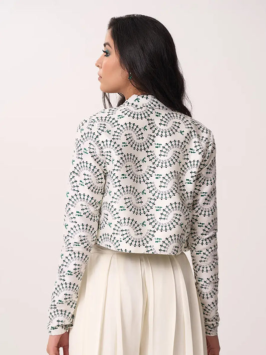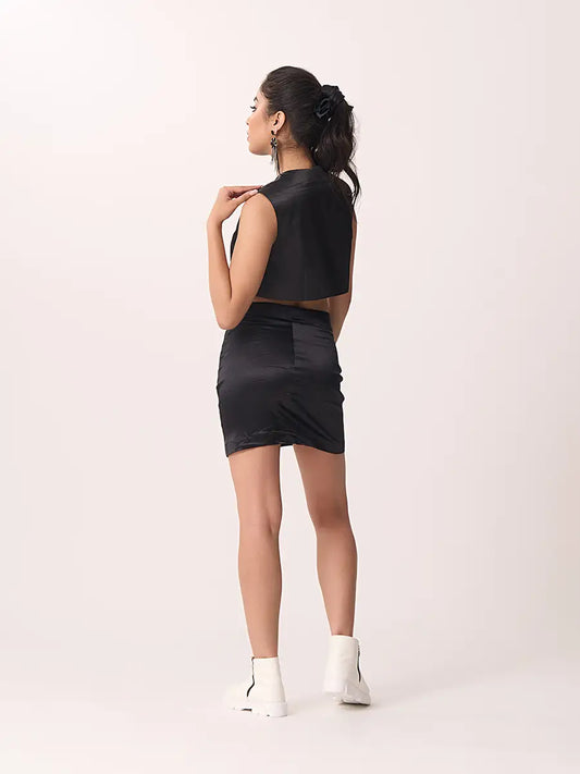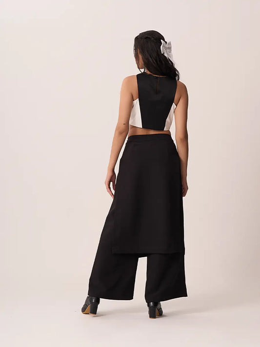 Black & Snow White Embroidered Crop Top & Flap Pant Set