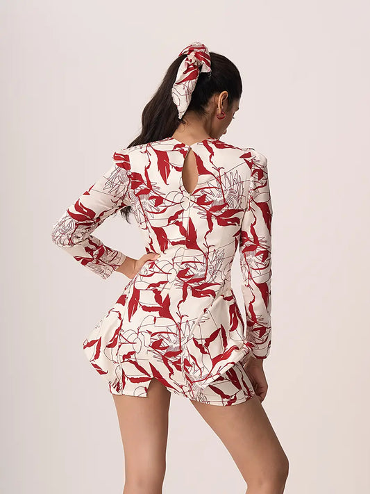 White & Cherry Red Structured Bodycon Dress with Cone Angles