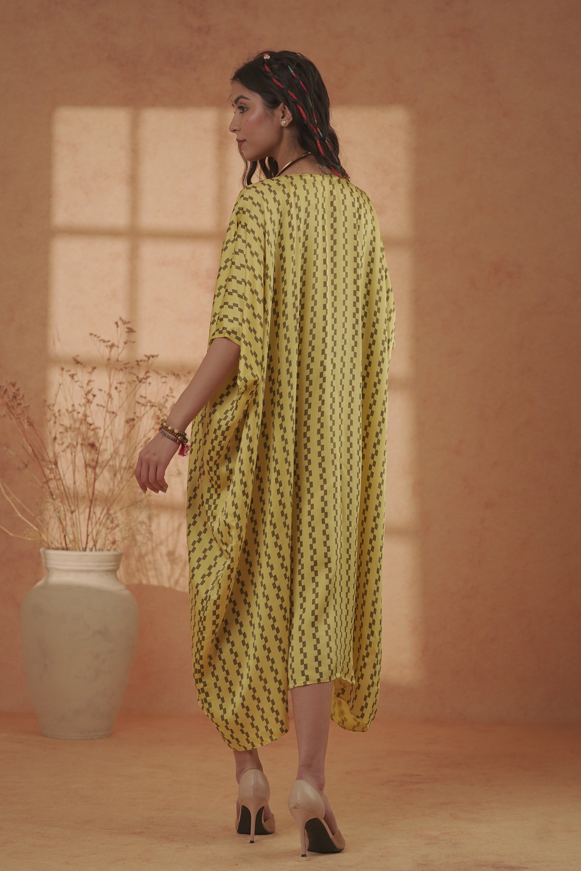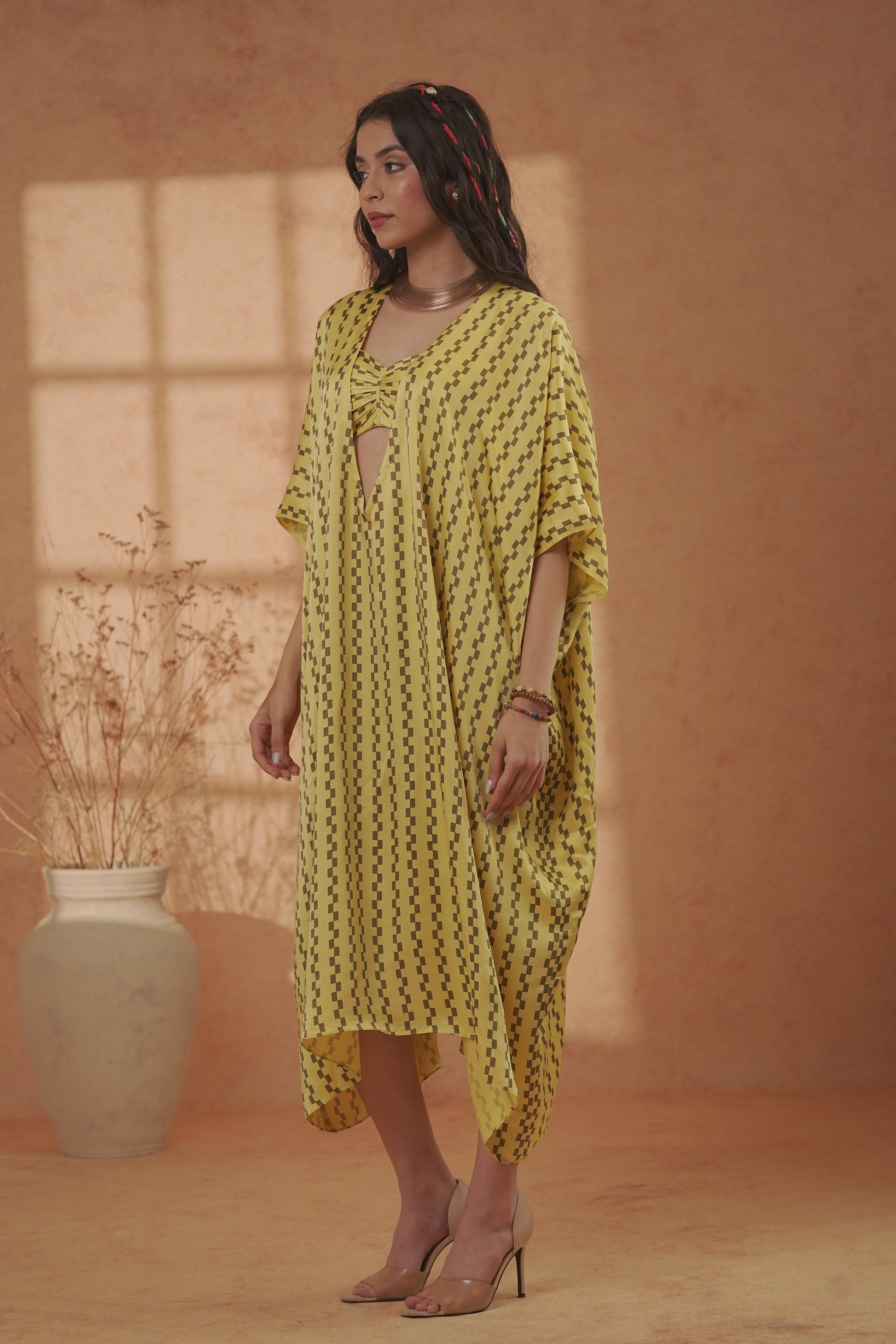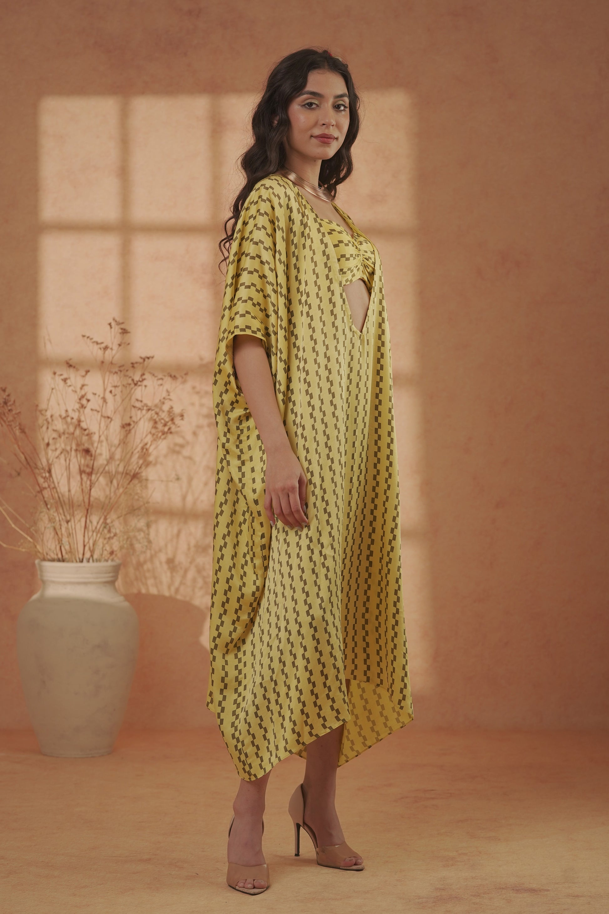 Step into effortless elegance with this vibrant kaftan set. The Roselia Yellow Checked Kaftan drapes beautifully in a soft satin blend, featuring bold geometric checks that are both eye-catching and timeless. Paired with a matching structured bustier-style tie-up at the back, this set combines comfort with a sculpted, contemporary look.